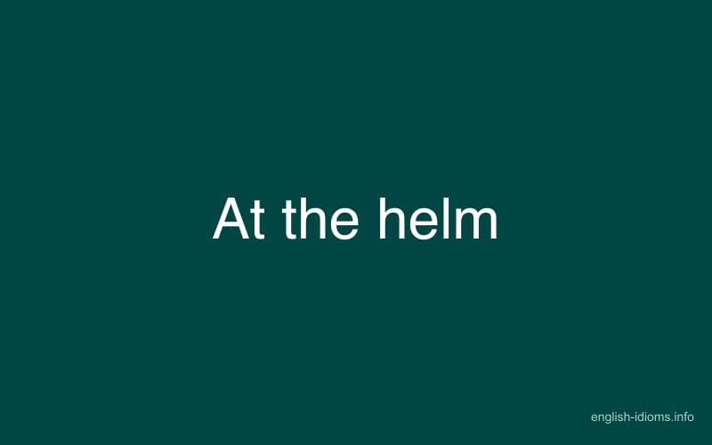 The idiom "at the helm" means to be in charge or in control of something, often referring to a leader, captain, or person who is making decisions.