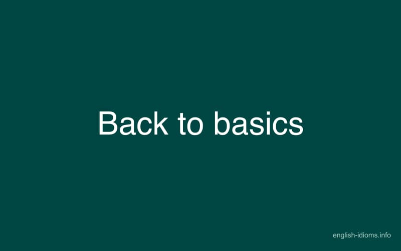 The idiom "back to basics" means going back to the original or basic principles of something, usually in order to understand it more fully or solve a problem. It can also mean starting over or beginning again from the beginning.