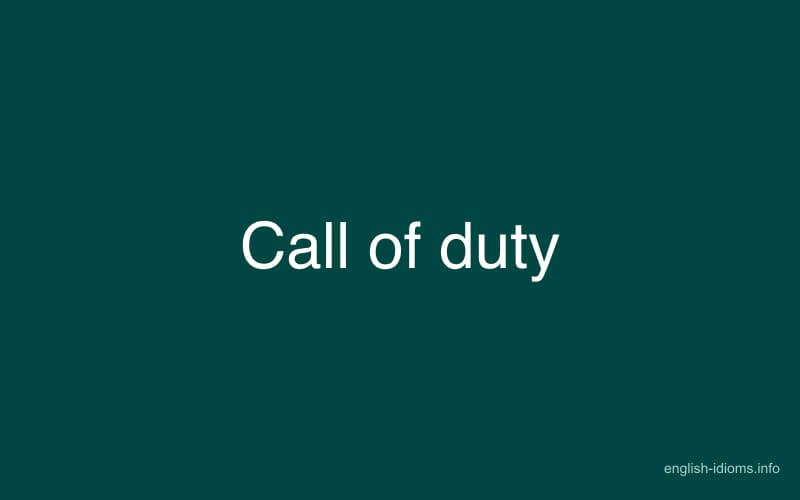 The idiom "call of duty" refers to an individual's obligation to perform a task or fulfill a responsibility, often associated with serving the public good or one's country.