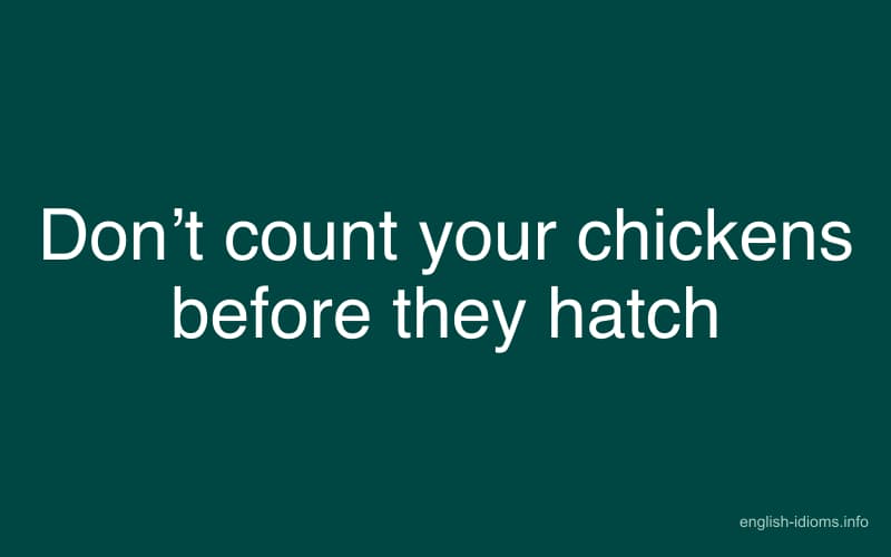 The idiom "don't count your chickens before they hatch" is a common phrase used to caution someone not to depend on potential success or outcomes that have not yet been realized.