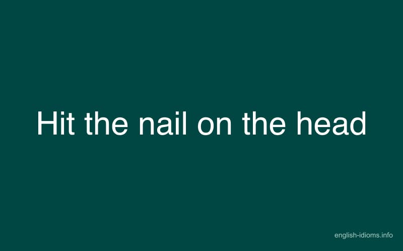 The idiom "hit the nail on the head" means to make an accurate or precise statement, to describe something exactly as it is. It can also mean to solve a problem or perform a task very well.