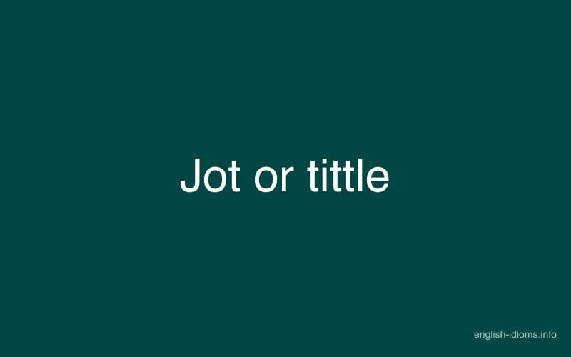 The idiom "jot or tittle" refers to something that is small, insignificant, or of little importance. It can be used to describe a person, an event, or an object that does not have much value or significance.