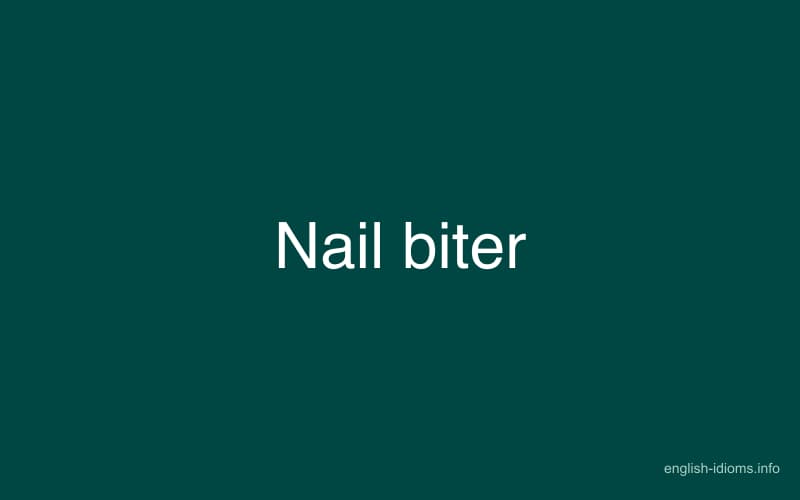 The idiom "nail biter" refers to a person who is very anxious or nervous before an event or situation that may affect them greatly, such as a performance or a test. It comes from the idea of biting one's nails nervously or anxiously.