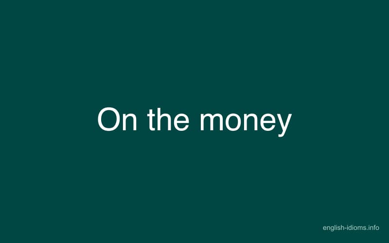 The idiom "on the money" means that something is accurate, correct, or on target. It can also mean that someone is performing their job well, or that a solution to a problem is effective and efficient.