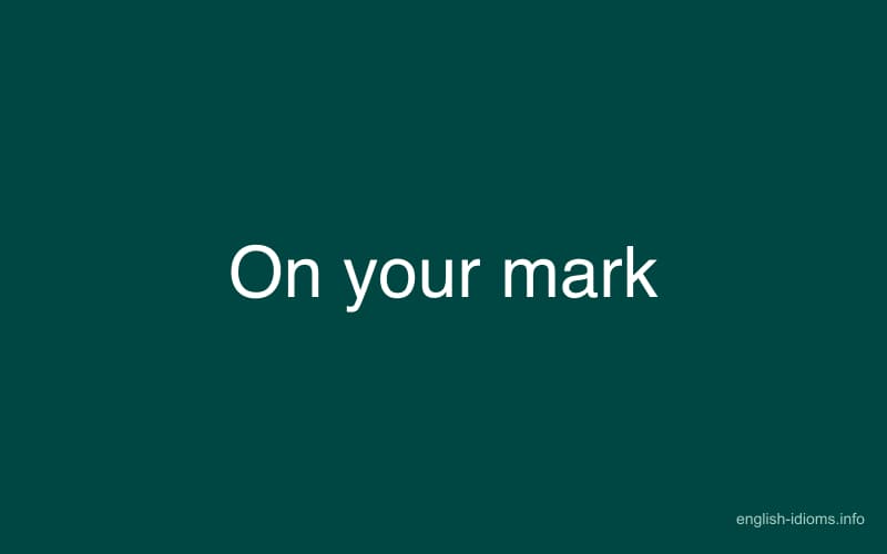 The idiom "on your mark" means that someone is ready or prepared to do something, and they are waiting for the signal to start. It can also mean that someone is focused or determined to achieve a goal or complete a task.