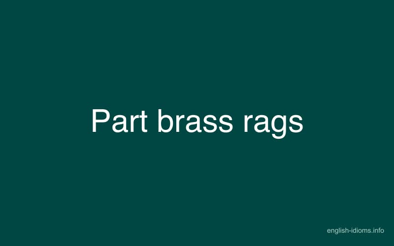 The idiom "part brass rags" refers to someone who is very poor or has low social status. It's a figurative way of saying that the person has nothing left to offer and is almost destitute.