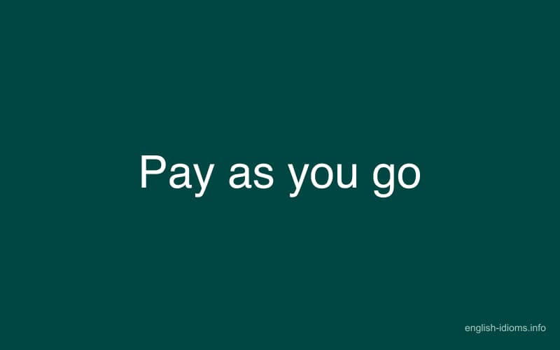 The idiom "pay as you go" means that someone is making a payment for something only when they receive or use the product or service being purchased. This payment may be made in cash, credit card, or on an account basis, depending on the agreement between the buyer and the seller.