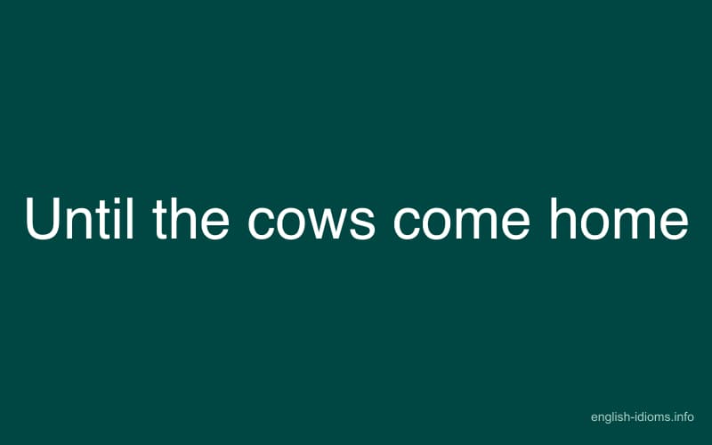 The idiom "until the cows come home" means that something will happen or continue to happen for a very long time, possibly even forever. It's an expression used to describe a situation that is expected to persist beyond a reasonable amount of time.